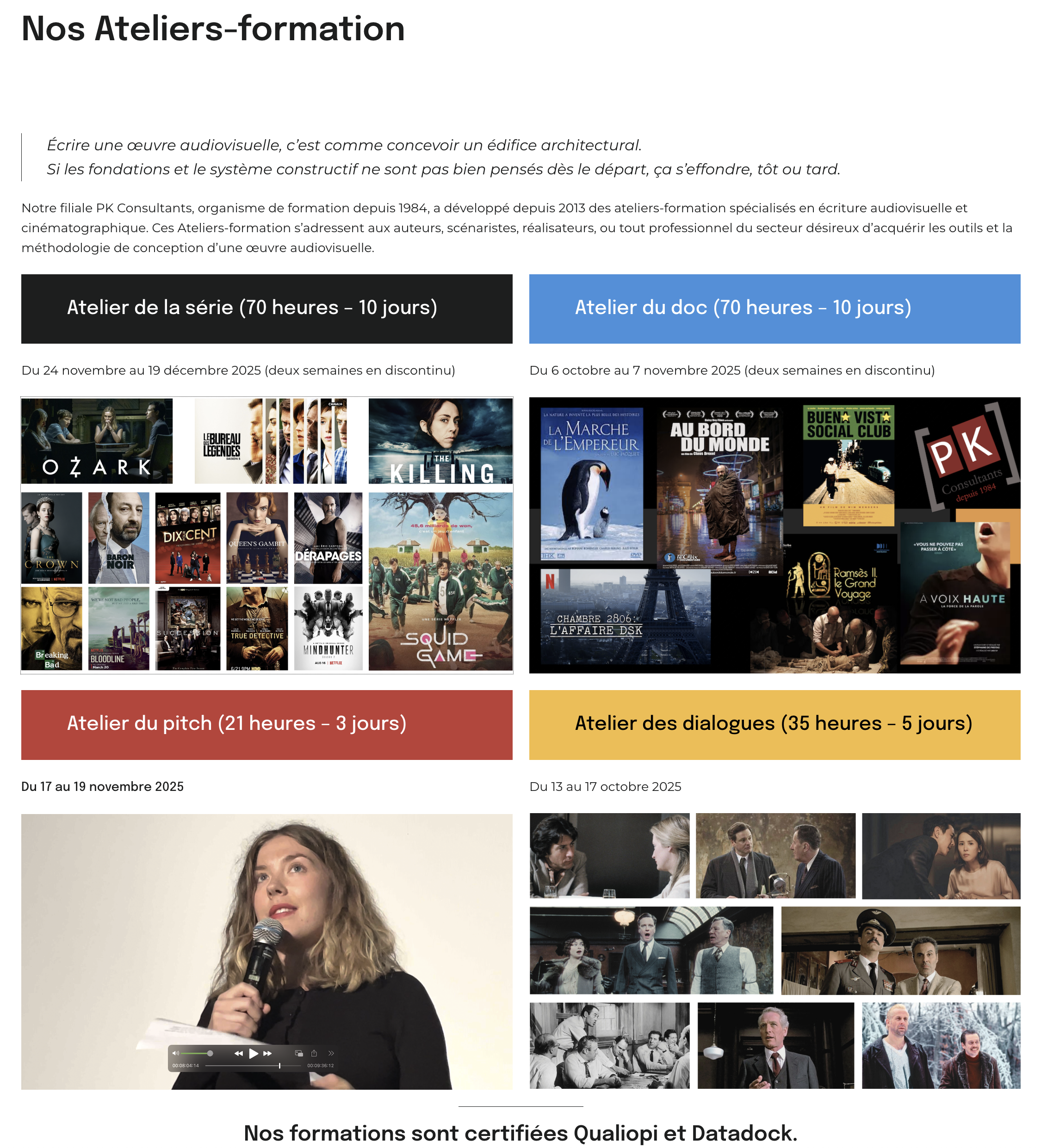 Que vous souhaitez développer et convaincre avec votre projet de série fiction ou de film documentaire, ou maîtriser vos dialogues, ou encore pitcher votre projet, nos ateliers-formation sont là pour…