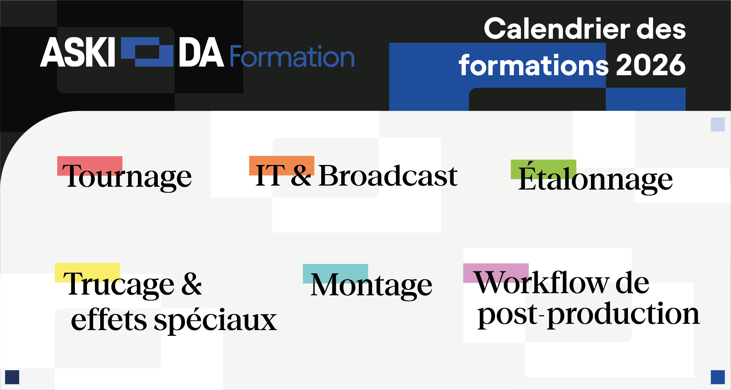 Centre de formation professionnelle certifié Qualiopi consacré aux métiers de l’audiovisuel depuis plus de 20 ans, Aski-da Formation conçoit et dispense des programmes pédagogiques pour accompagner les évolutions des outils et des métiers du secteur audiovisuel. Nous élaborons des plans de formation… Lire la suite