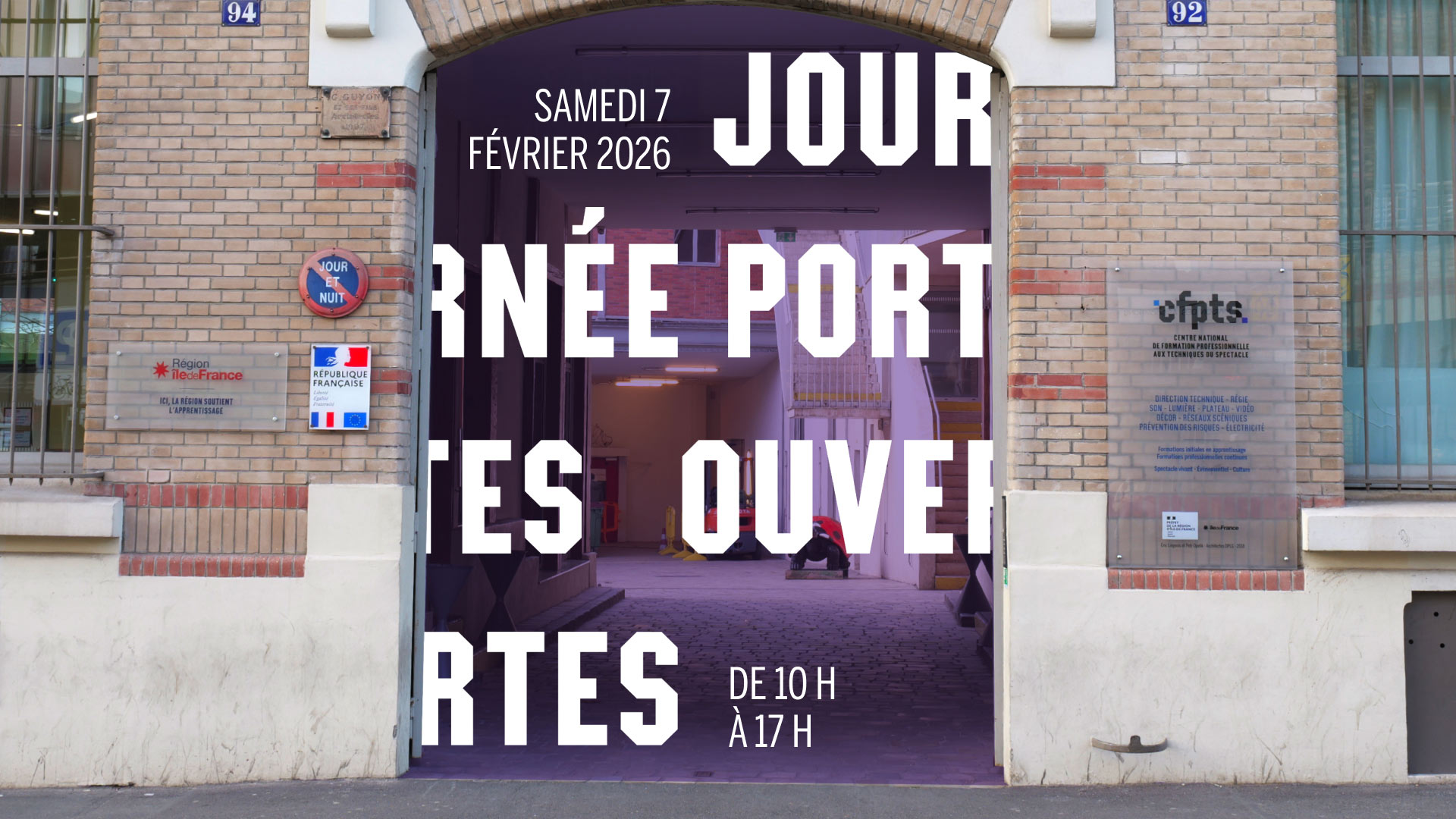 Le samedi 7 février 2026, de 10h à 17h, le CFPTS vous ouvre ses portes pour une Journée Portes-Ouvertes dédiée aux formations en apprentissage. Une occasion idéale pour découvrir nos cursus, nos espaces techniques et mieux comprendre les métiers du spectacle vivant et de l’événement.