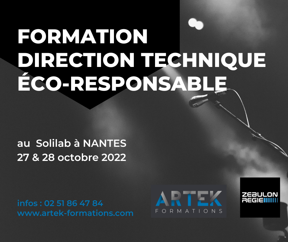 Les 27 et 28 octobre 2022 à Nantes, ARTEK Formations organise en coproduction avec Zébulon Régie une formation de 2 jours sur l’éco-responsabilité dans les métiers techniques. L’objectif ? Étudier une méthodologie et des bonnes pratiques pour rendre son événement plus respectueux et responsable.
