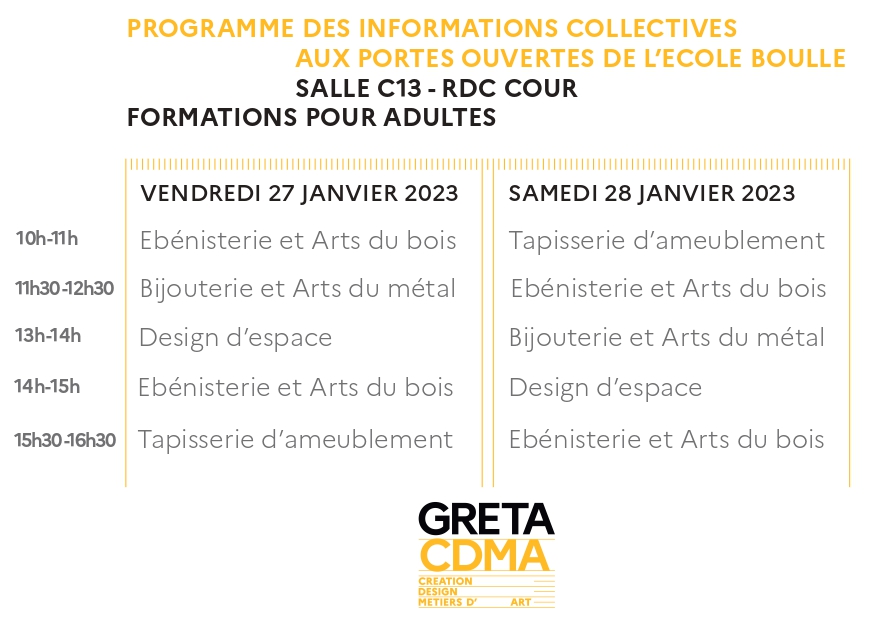 JPO à l’École Boulle pour nos formations en Design d’espace, Arts du bois, Bijouterie et Tapisserie d'ameublement.