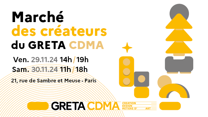Le GRETA CDMA vous invite à une exposition-vente exceptionnelle pour découvrir les talents créatifs de nos anciens stagiaires les 29 et 30 novembre 2024.