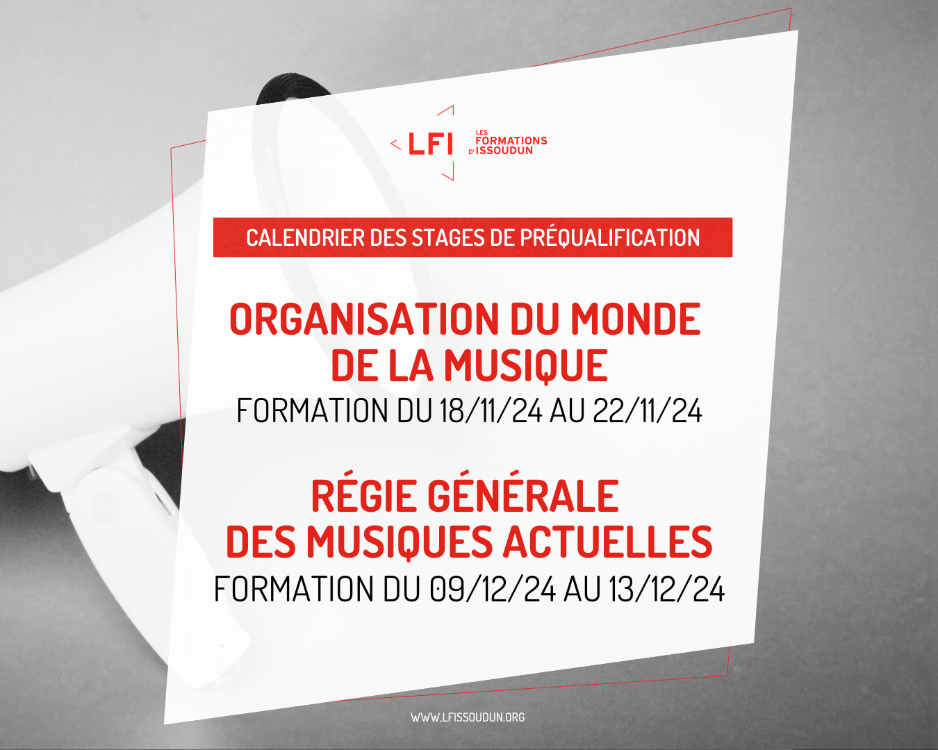LFIssoudun propose des formations professionnelles certifiantes aux métiers des musiques actuelles : chef·fe de projet musique, booker·euse/chargé·e de diffusion, régisseur·se de production, technicien·ne de plateau et des formations professionnalisantes en partenariat avec la Région Centre-Val de Loire.… Lire la suite