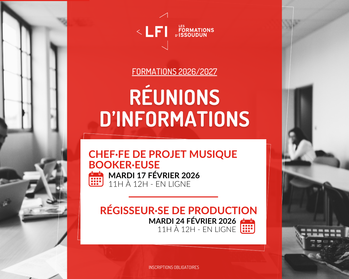 RÉUNION SUR LES FORMATIONS CHEF·FE DE PROJET MUSICAL ET BOOKER·EUSE (inscript