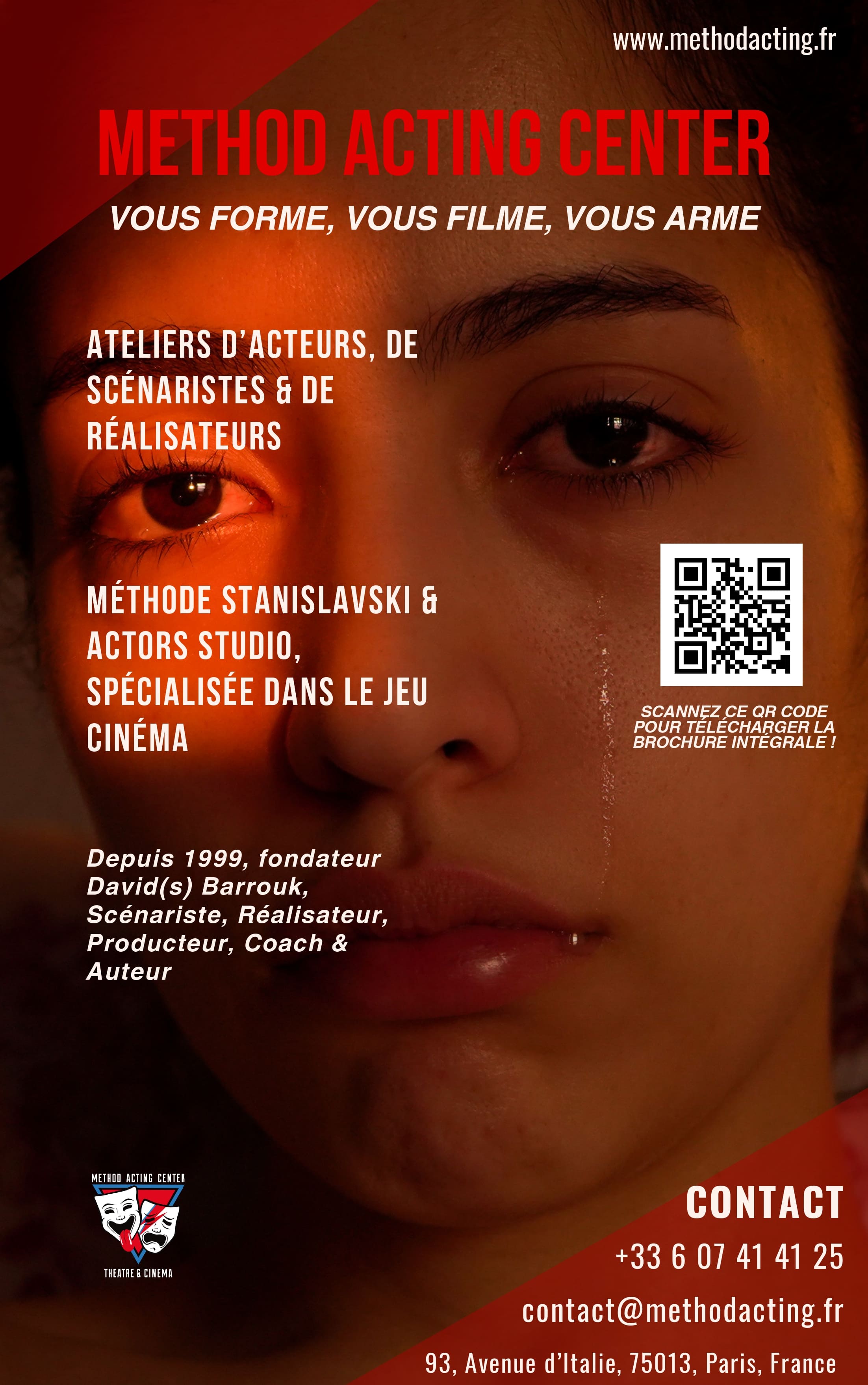 Formation d’Acteurs, Scénaristes & Réalisateurs pour le Cinéma et le Théâtre à Paris 13e. Un enseignement professionnel basé sur les méthodes de Stanislavski et de l’Actors Studio. Tous niveaux acceptés. Cours hebdomadaires, Stages & Coaching privé. Cours d’essais gratuits possibles toute l’année… Lire la suite