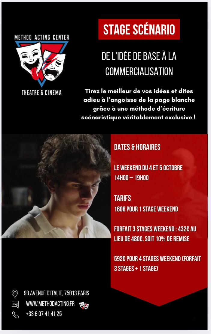 Formation d’Acteurs, Scénaristes & Réalisateurs pour le Cinéma et le Théâtre à Paris 13e. Un enseignement professionnel basé sur les méthodes de Stanislavski et de l’Actors Studio. Tous niveaux acceptés. Cours hebdomadaires, Stages & Coaching privé. Cours d’essais gratuits possibles toute l’année… Lire la suite