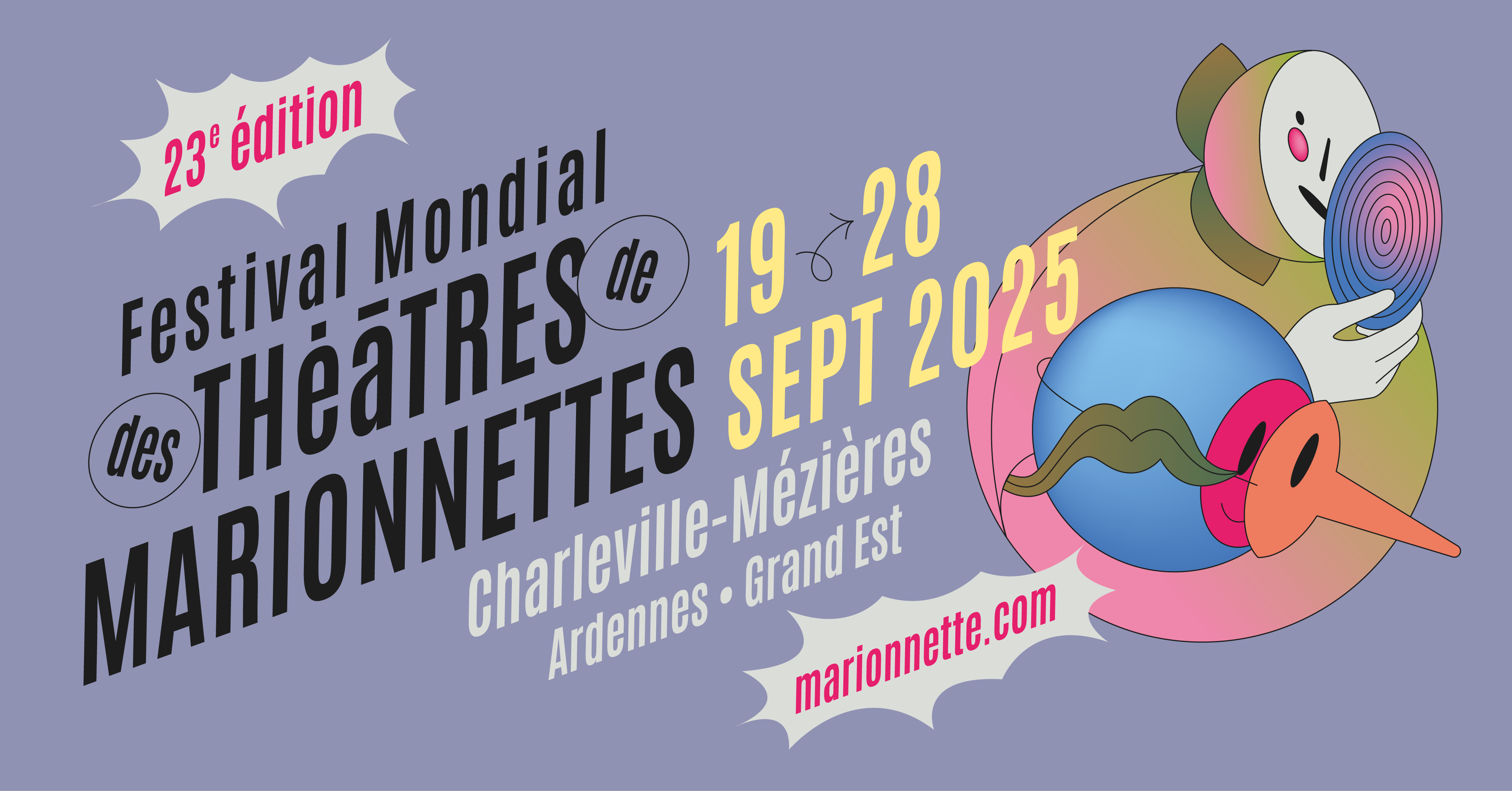 La 23e édition du Festival Mondial des Théâtres de Marionnettes se tiendra du 19 au 28 septembre à Charleville-Mézières. Devenu le plus grand rendez-vous artistique au monde pour les arts de la marionnette, il proposera près de 400 représentations pendant 10 jours pour plus de 155 000 spectateurs.