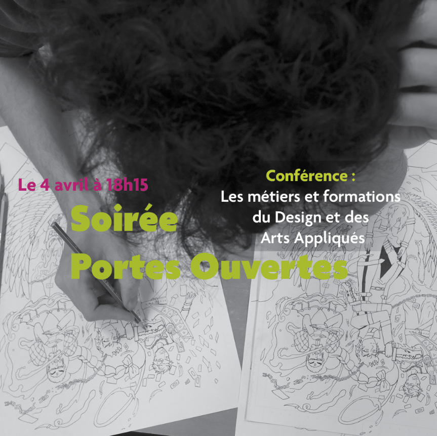 Jeudi 4 avril à 18h15, rendez-nous visite pour notre Soirée Portes Ouvertes sur les formations et métiers du Design et des Arts Appliqués !