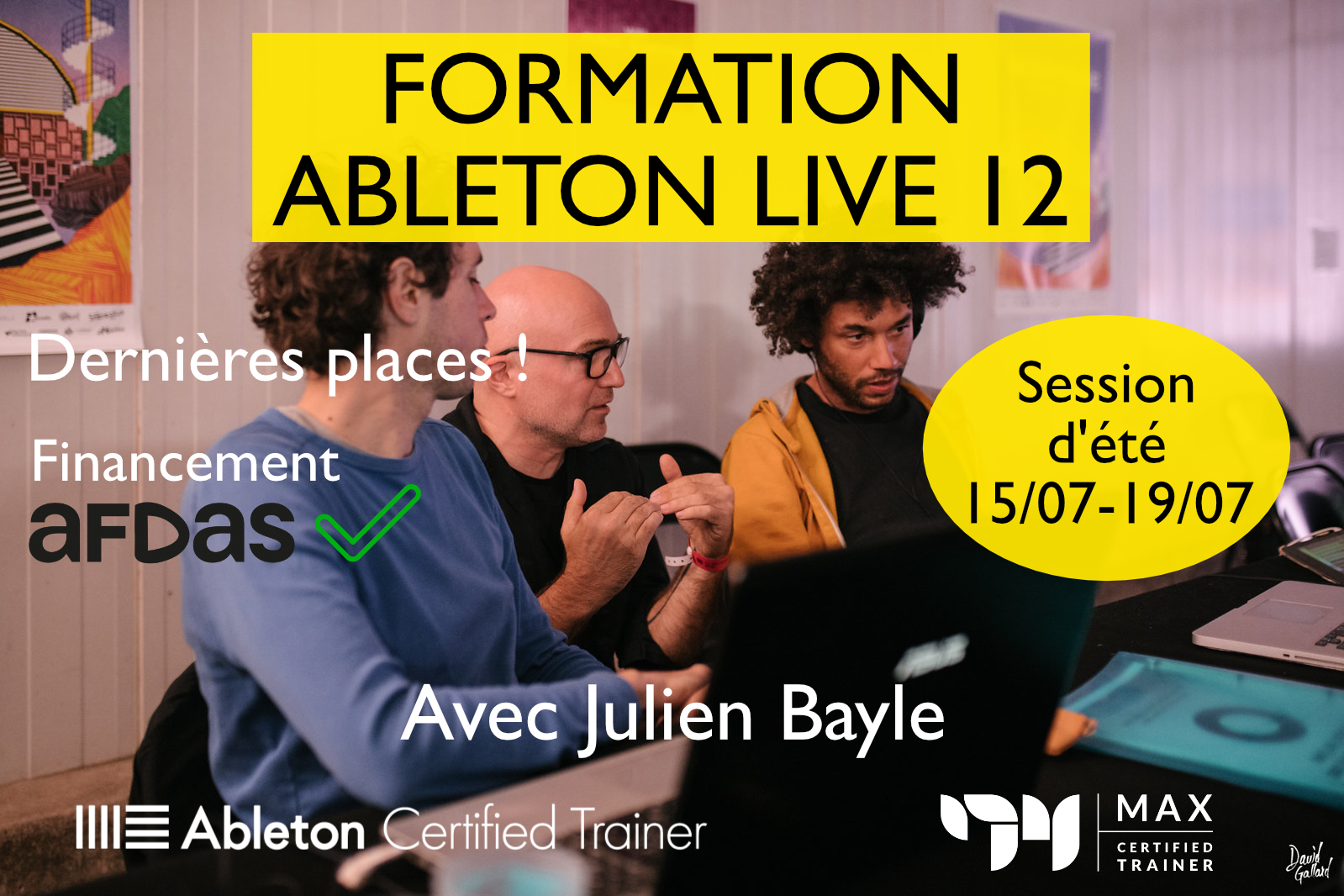Cette formation est délivrée par Julien Bayle, seul Ableton Certified Trainer et Max Certified Trainer en France. Finançables à 100% par l'AFDAS, France Travail et autres OPCO
