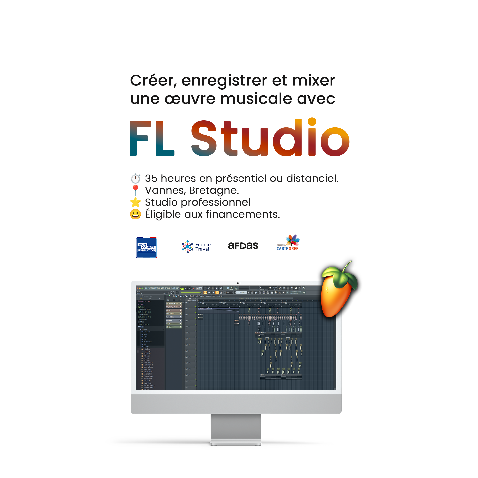 Au cours de cette formation, vous développerez des compétences approfondies en production musicale sur FL Studio/Ableton Live, afin de créer, enregistrer et mixer des projets audio de manière professionnelle. Cette formation vise à une certification (dont CQP) ou une habilitation enregistrée au répertoire spécifique (RS).