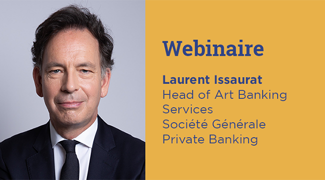 L’Executive Master Gestion du patrimoine artistique privé, formation proposée par Dauphine Executive Education en collaboration avec Christie’s, organise le mardi 21 juin 2022 de 12h à 13h un webinaire avec pour invité d’honneur Laurent Issaurat, Head of Art Banking Services chez Société Générale Private Banking.