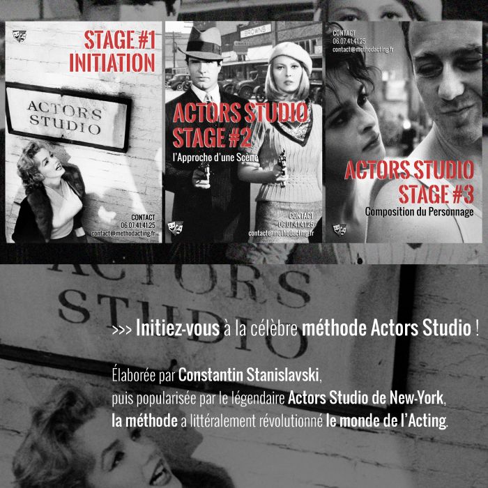 Élaborée par Constantin Stanislavski puis popularisée par le légendaire Actors Studio de New-York, « la méthode » a littéralement révolutionné le monde du Théâtre et du Cinéma. Il ne s’agit pas ici de vaguement copier la vie : mais véritablement de créer la vie sur scène !